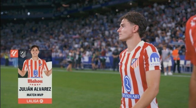 8月18日讯 西甲首轮,马竞1-2遭逆转客负西班牙人。赛后阿尔瓦雷斯当选全场最佳球员。